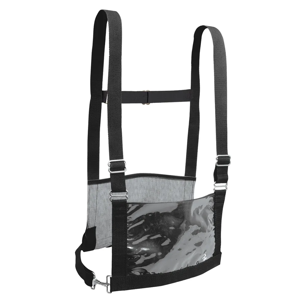 Waist and shoulder straps are fully adjustable to allow for a perfect fit. Elastic waist strap allows for comfort around middle. Simply slide your number card into the plastic window sleeves in front and back of harness.Â