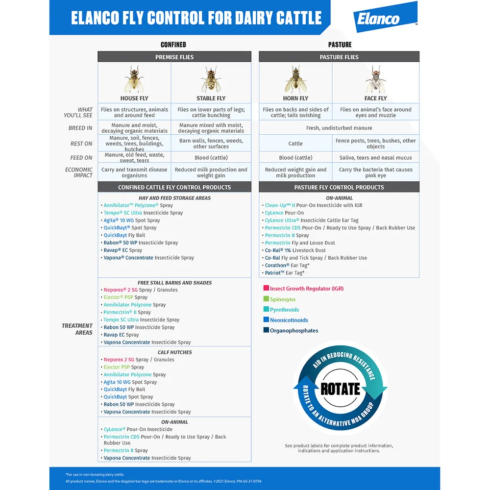 Also for control of litter beetles. Combination of a neonicotinoid insecticide, with both contact and stomach modes of action, with a house fly attractant provides an effective fly bait formula that encourages both male and female house flies to remain in treated areas and consume a contact lethal dose. Results in a quick kill and long-lasting residual for a minimum of 6 weeks.