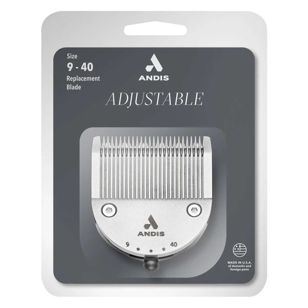 Stainless steel replacement blade for use with Pulse Li 5 Clipper. Adjusts for cutting lengths 9-40 (2 mm-0.25 mm). Detachable for easy cleaning and replacement. Sold as a set; top and bottom blades included.