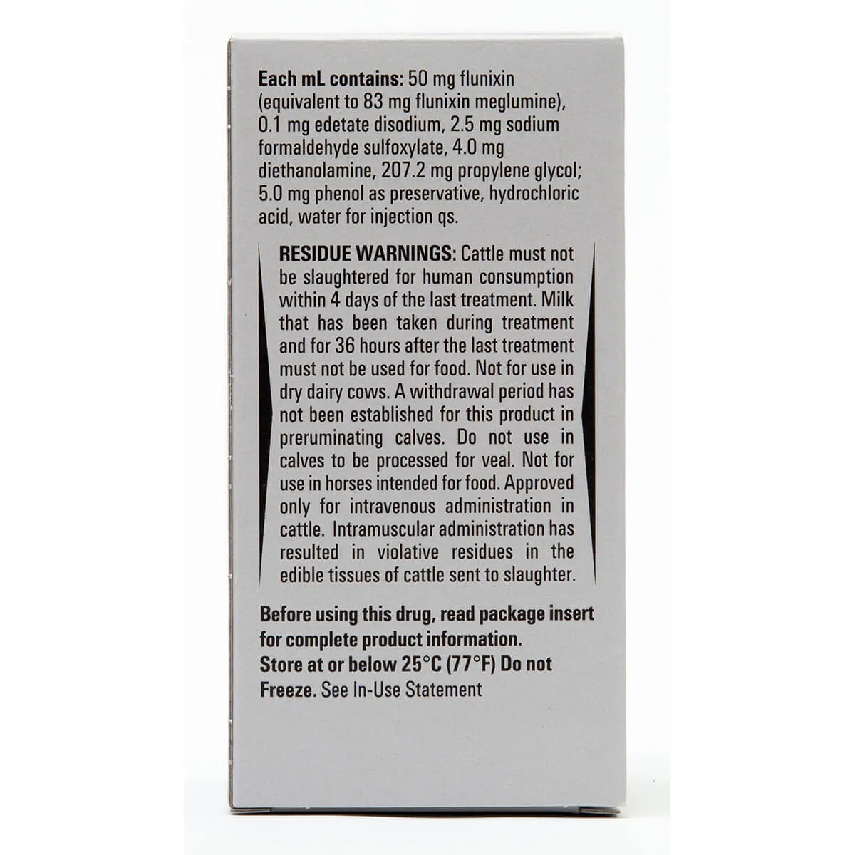 Contains 50 mg flunixin meglumine per ml.