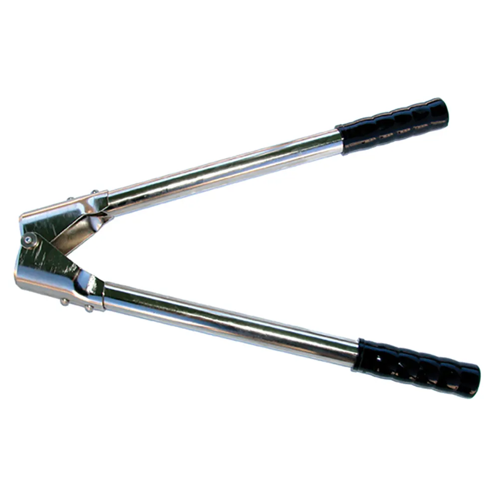 Constructed of heavy-duty hardened steel with rust-resistant oxidized finish. Feature steel handles with rubber grips.