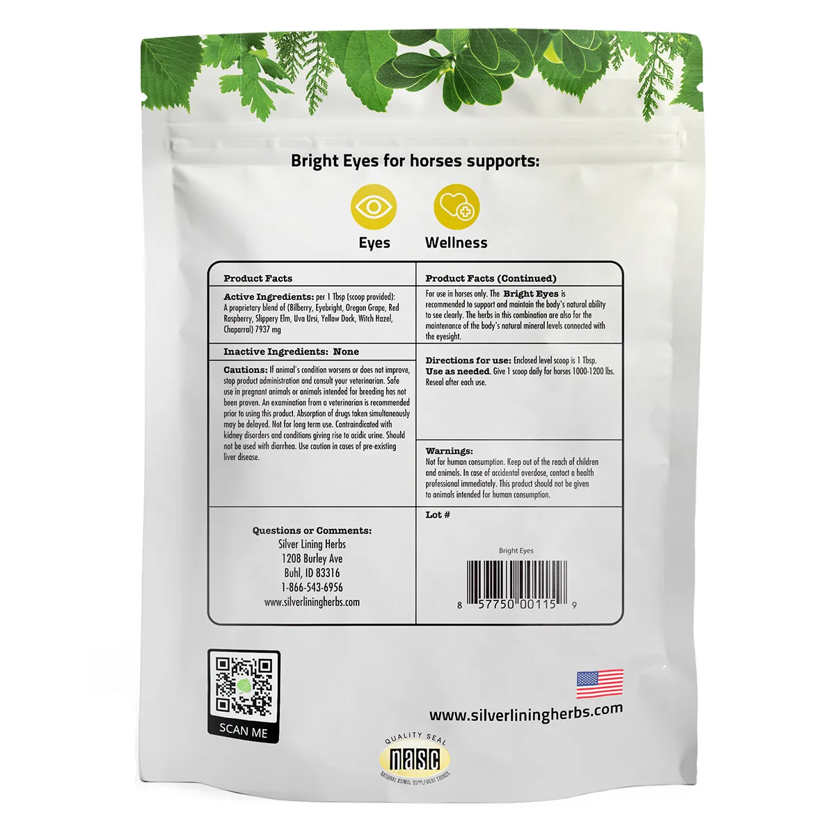 Supports the horse’s ability to see clearly, promoting long-term eye health. Maintains the body’s natural mineral levels connected with eyesight. May reduce free radical damage. For use in horses only.