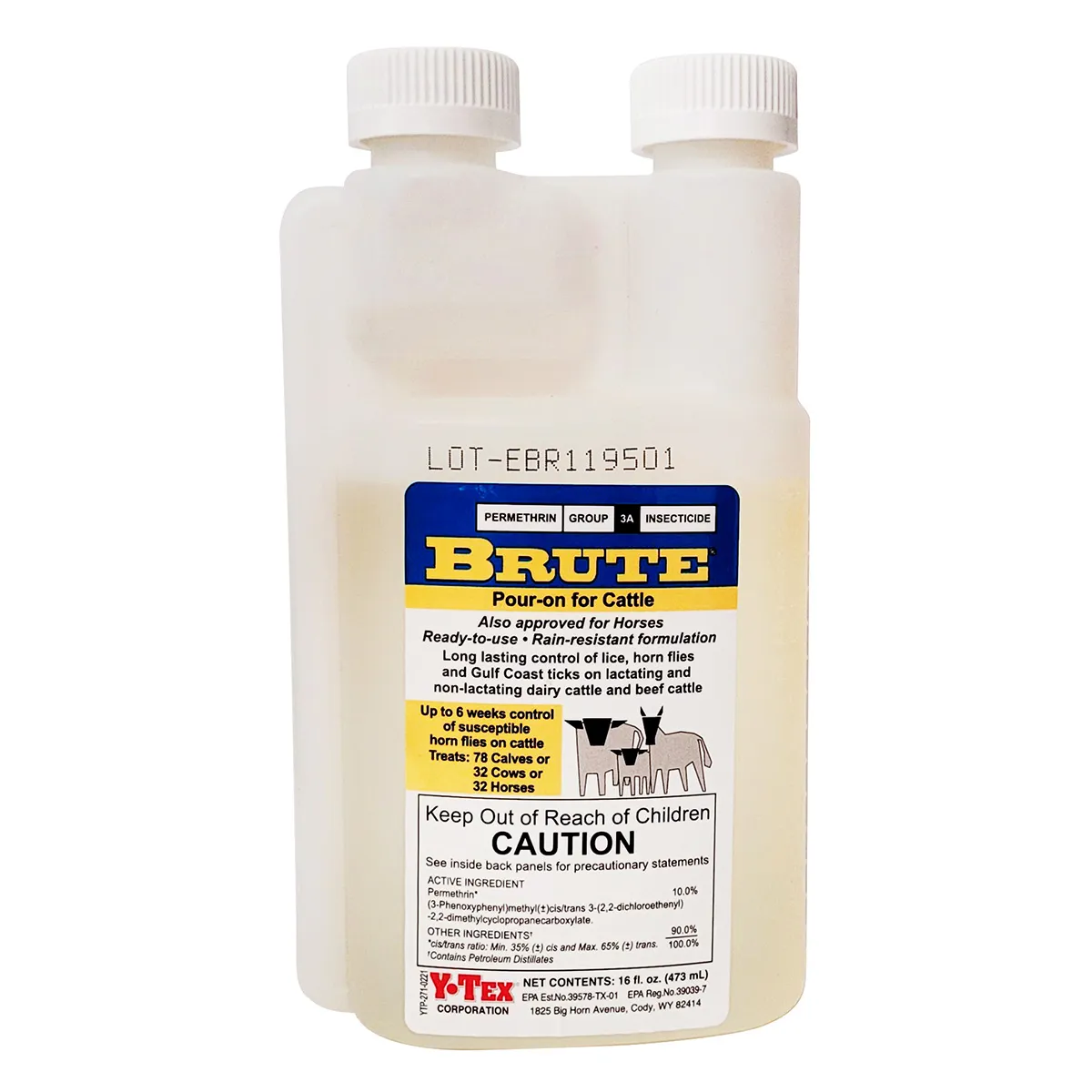 Dosage for cattle: For horn flies, apply 3 ml per 200 lbs body weight down midline of back over shoulders. For other pests, apply from poll down neck over shoulders. Repeat every 2 weeks as needed. Requires no milk withholding or slaughter withdrawal. Easy to measure – 16 oz bottle features convenient 1/2 oz measuring chamber. Highly concentrated – 16 oz treats 64 head of 500 lb cattle; one gallon treats 252 cows or 504 calves at 600 lbs.