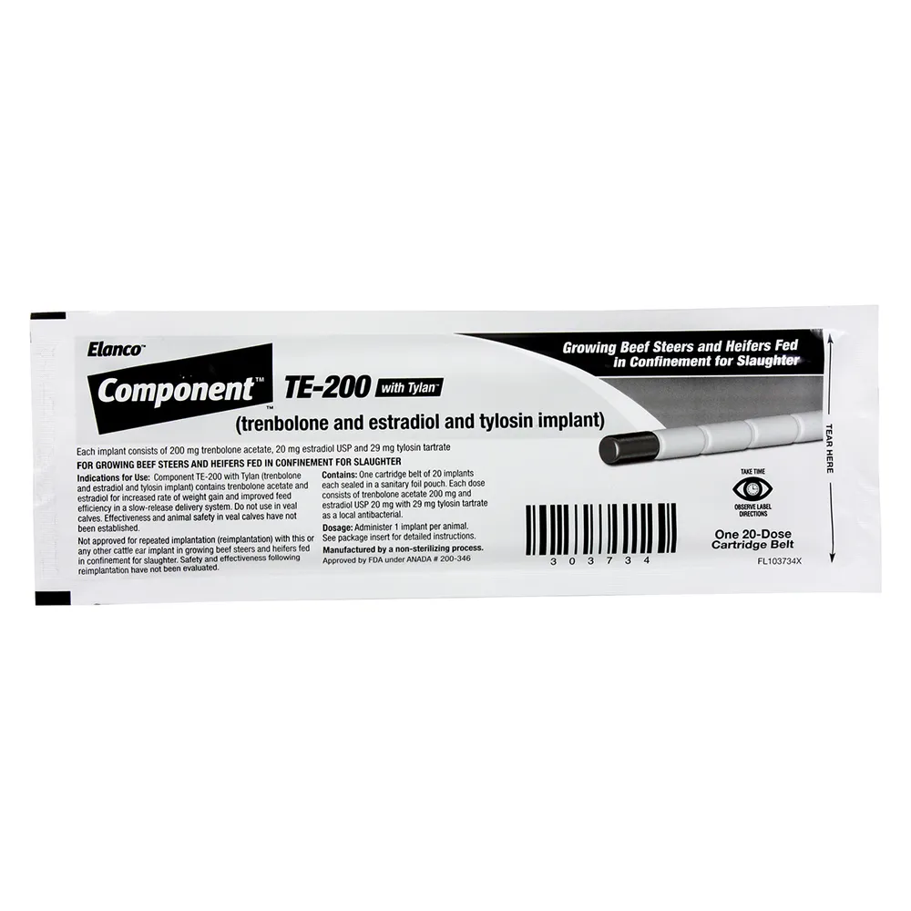 Implants recommended for use in steers and heifers fed in confinement for slaughter for increased rate of weight gain and improved feed efficiency.Each dose contains 200 mg trenbolone acetate, 20 mg estradiol USP and 29 mg tylosin tartrate.Do not use in animals intended for subsequent breeding, dairy animals or veal calves.