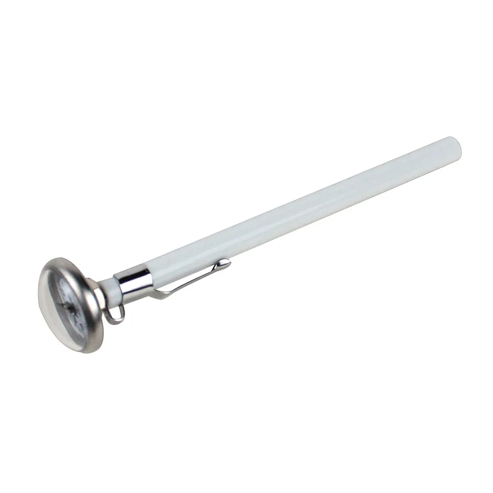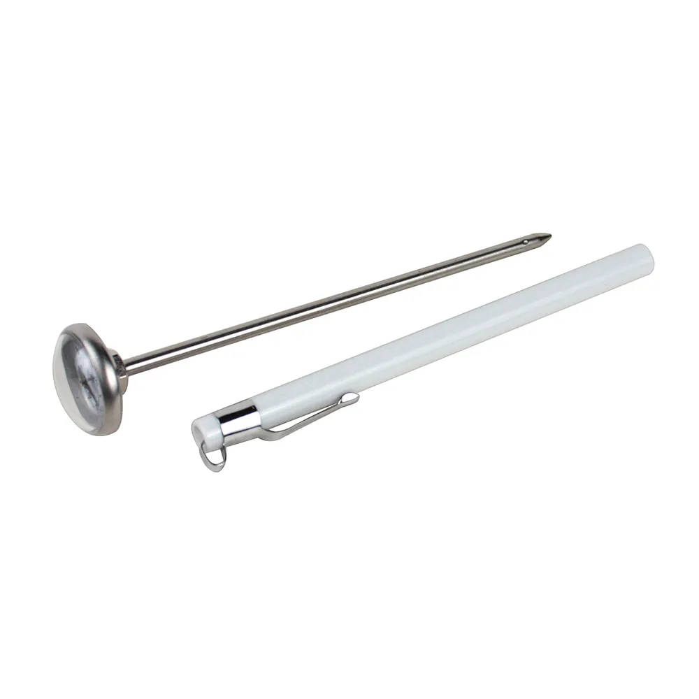 Features round dial face. Plastic protector includes handy pocket clip. 5″L.