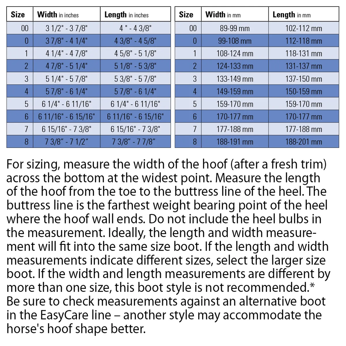 | Option | Size 00, Pr, Size 0, Pr, Size 1, Pr, Size 2, Pr, Size 3, Pr, Size 4, Pr, Size 5, Pr |