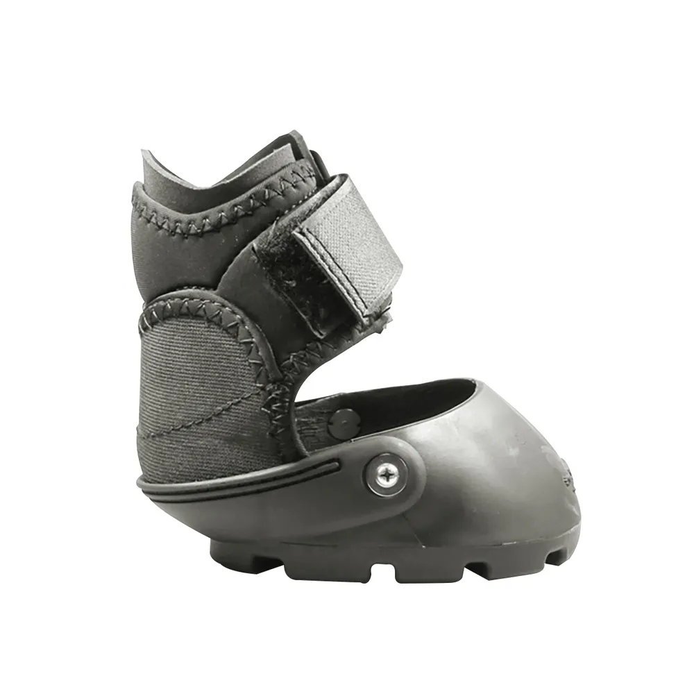 Like a glove, the boot hugs the hoof and responds like a natural foot. Fits like a second skin and doesn’t add bulk, width or hinder mobility. No external hardware for grass or sticks to get caught in the boot. Material stretches over hoof and clings to wall, keeping debris out even in sandy and muddy conditions. Elastic cap at rear of gaiter fits contours of feel bulb while offering generous proportions of stretch and strength. Reinforced gaiter features a smooth surface and dual layer of neoprene.Â