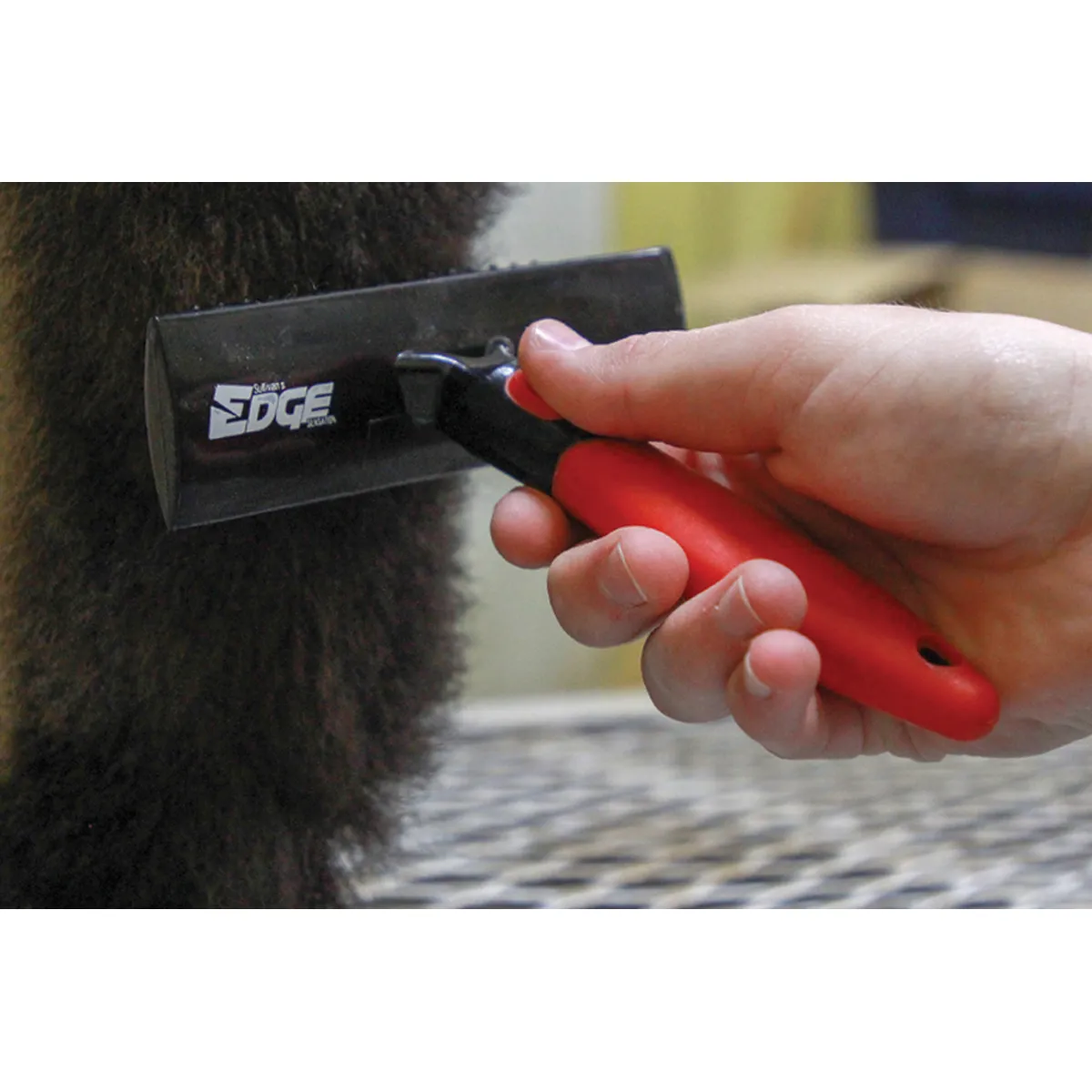 Angled head provides more coverage and ease of use. Sensation features 79 plastic ball-tipped bristles allowing for detangling with minimal pullout on lambs. Also great for popping leg wool or hair on cattle and goats. Slicker features 6 rows of over 360 angled bristles. Teeth measure 10/16 of an inch; ideal for working wool.