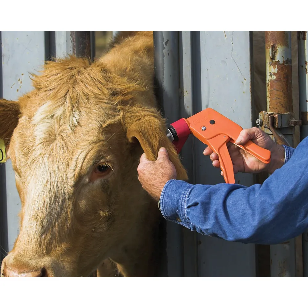 Used to apply High Performance and Standard Performance EID Tags. Features contoured pistol-grip handle designed to retract the pin out of the ear before animal can react. Anvil can be repositioned to any angle for left or right application variables.