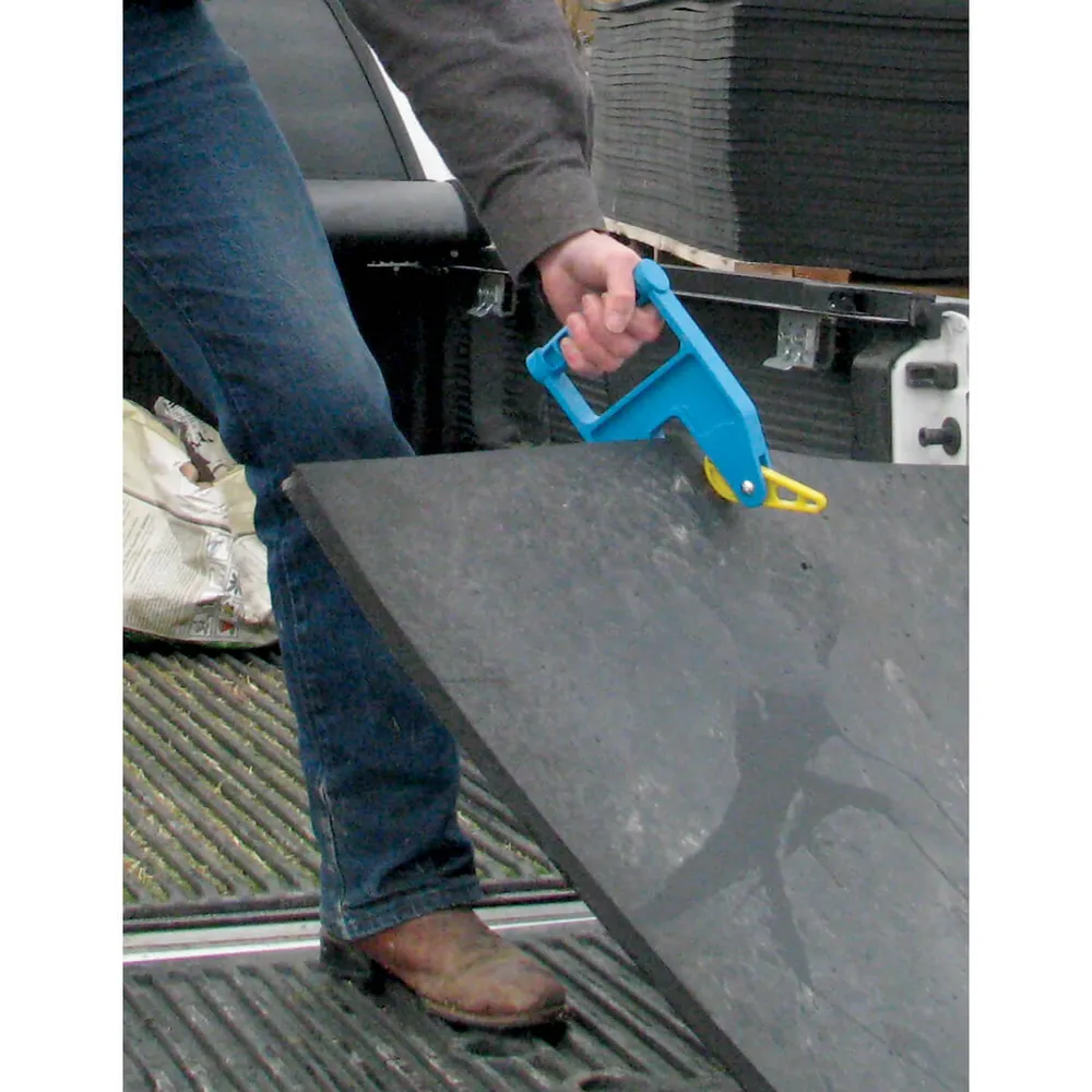 Just slide the edge of a dry mat into the EZ Grip slot and the spring-loaded cam/grip locks on instantly and holds tight. Then release the mat by pushing the lever forward. Great for moving plywood and carpet, too. High-impact construction is rated to move up to 300 lbs.