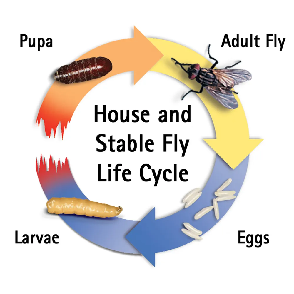 Fly growth regulator, LarvaStop, breaks the fly life cycle by preventing the formation of fly larvae’s exoskeletons when they molt, thereby resulting in their death.
