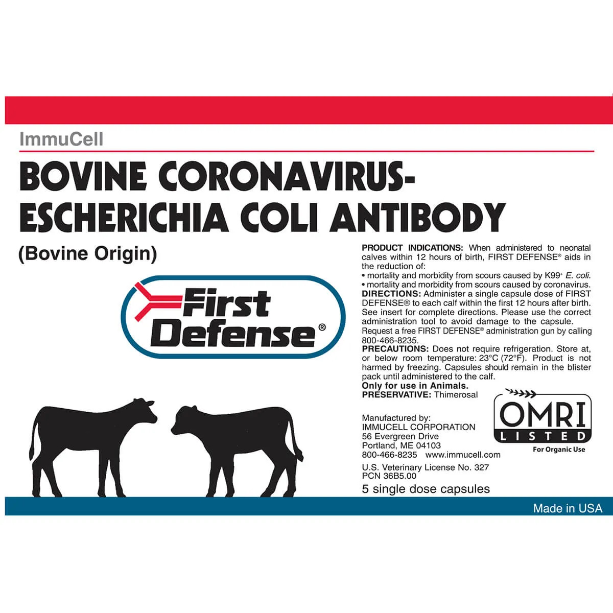 Studies have shown that calves that scour are more susceptible to other diseases later in life and under-perform calves that do not contract scours. The direct, two-part mode-of-action of First Defense delivers specific immunoglobulins at the gut level to immediately protect against disease, while also providing additional antibodies that are absorbed into the bloodstream. These circulating antibodies function like a natural timed-release mechanism, as they are re-secreted into the gut later to provide extended protection. A single dose of First Defense provides a guaranteed level of protection proven to reduce mortality and morbidity from two major causes of calf scours.
