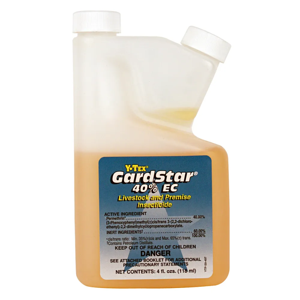 Dosage: For livestock spray, mix 30-118 ml to 25 gallons water (treats 50-100 animals); For a premise spray, mix 90-118 ml to 10 gallons water. See label for additional dosage directions. Can be used in sprayers and with backrubbers. No milk withholding. Slaughter withdrawal: Swine – 5 days.