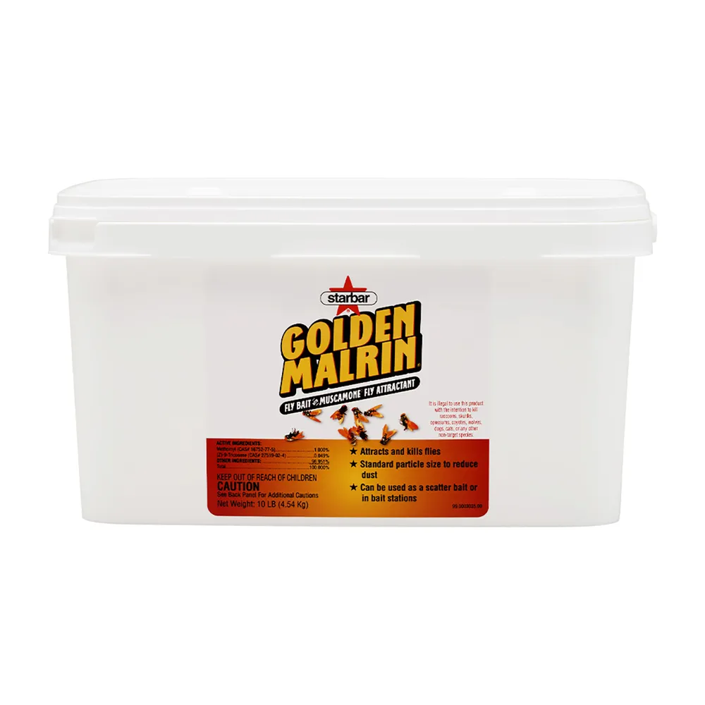 For use as a scatter bait or with bait stations. Muscamone attractant encourages both male and female flies to remain in treated areas. Can be used only around the outside of feedlots, broiler houses, canneries, meat, poultry and other food processing plants. Blue color.
