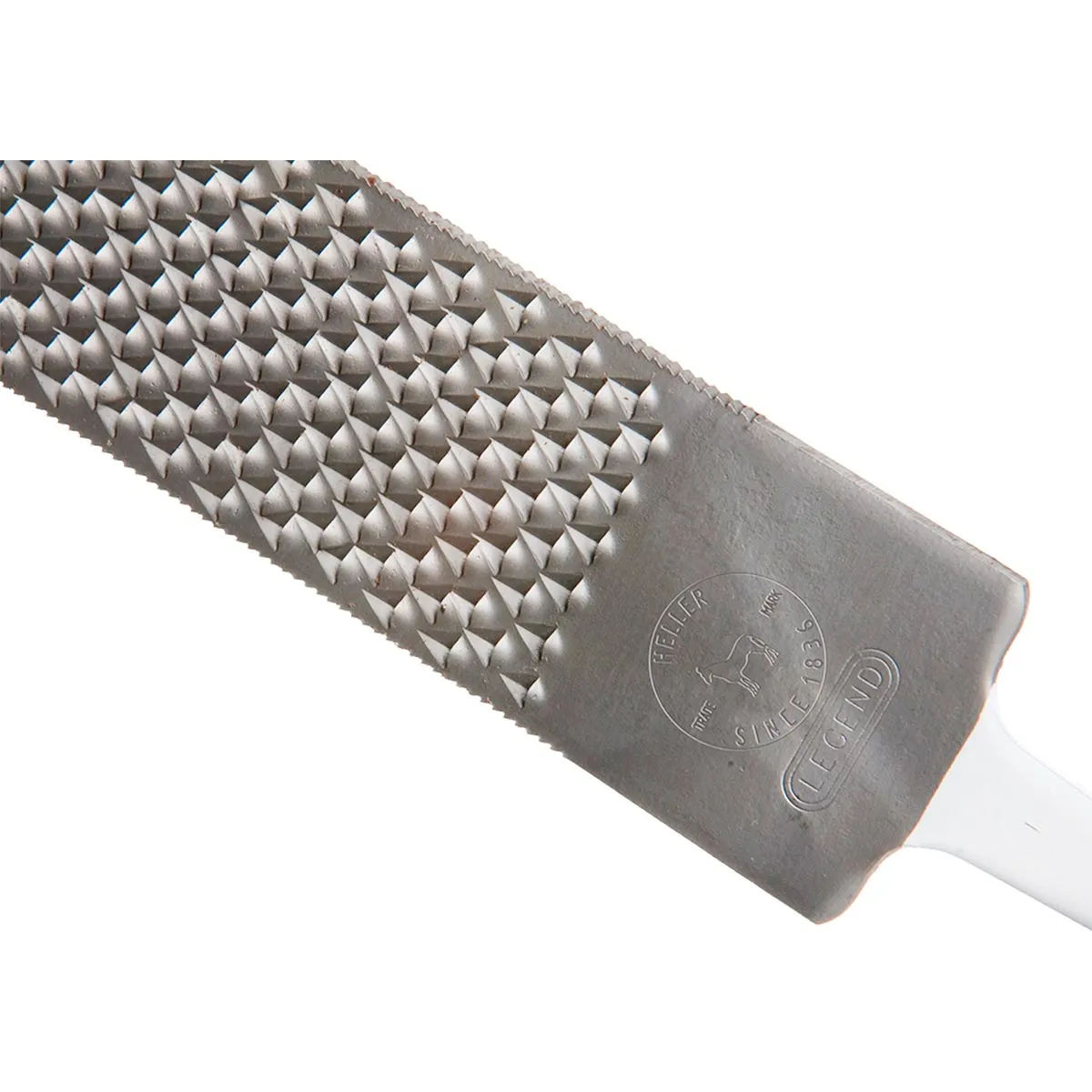 Features two sides; rasp and file. Rasp side has large teeth and less concentrated pattern helps prevent clogging. Open structure ideal for soft, damp horn material. File side creates efficient removal of hoof with little effort leaving a smooth surface.