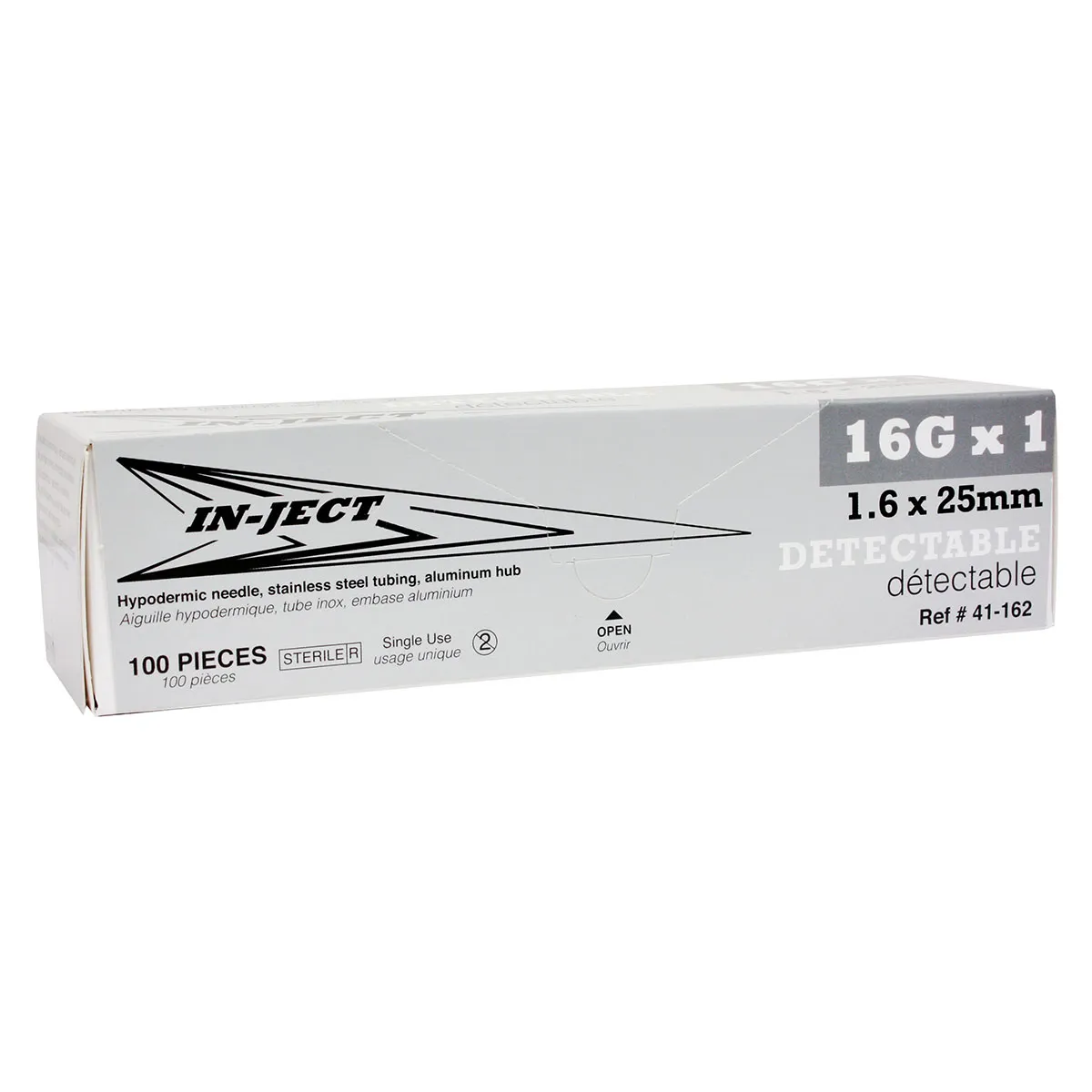 Single-use needles with stainless steel tubing and aluminum hub.Â