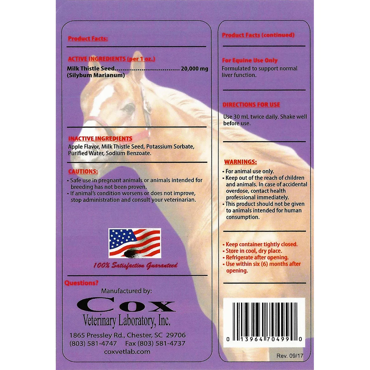 1 oz contains 20,000 mg milk thistle seed, purified water, apple flavor, potassium sorbate and sodium benzoate.