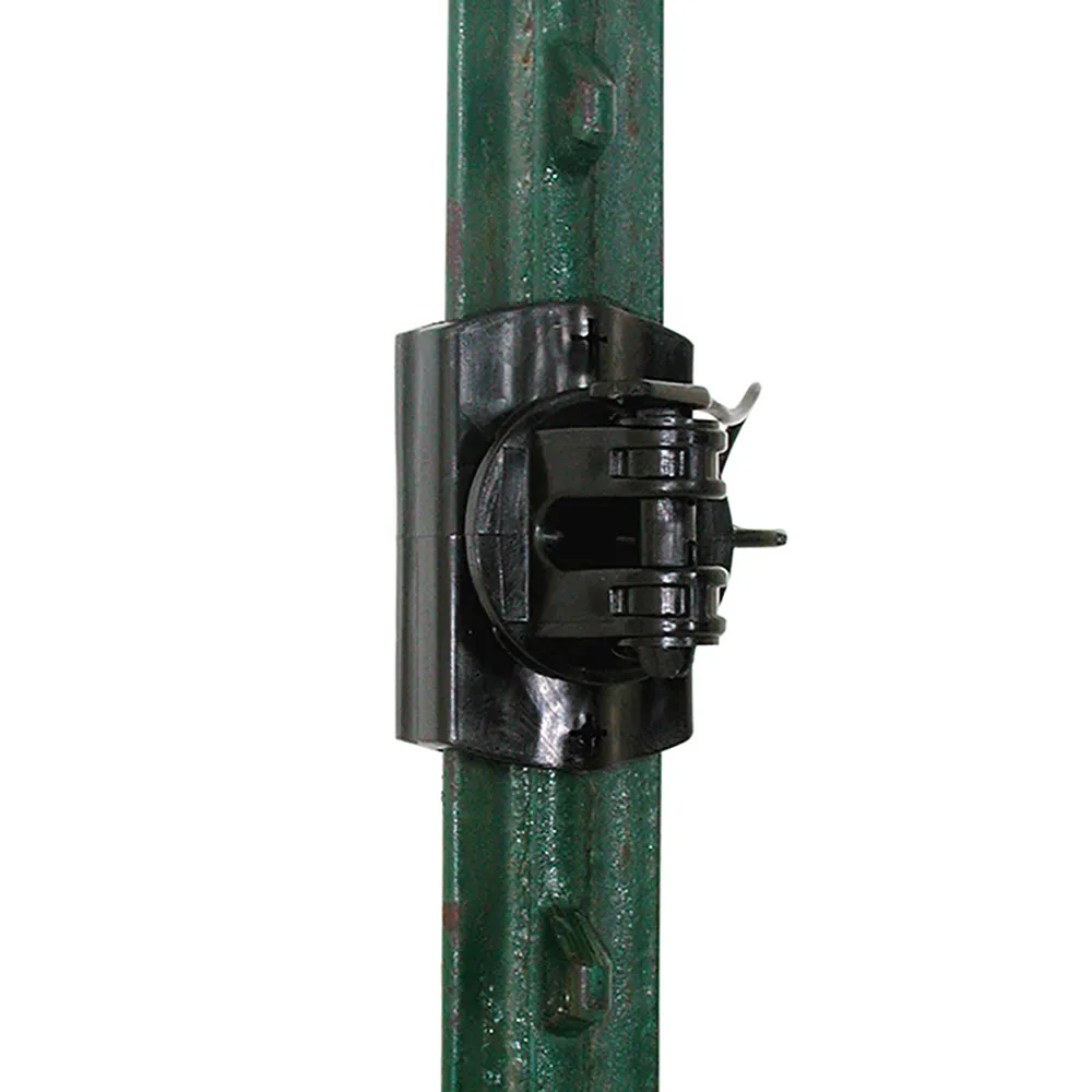 Heavy-duty, snap-on plastic insulators designed for steel posts but can be nailed to wooden posts or screwed to vinyl posts.