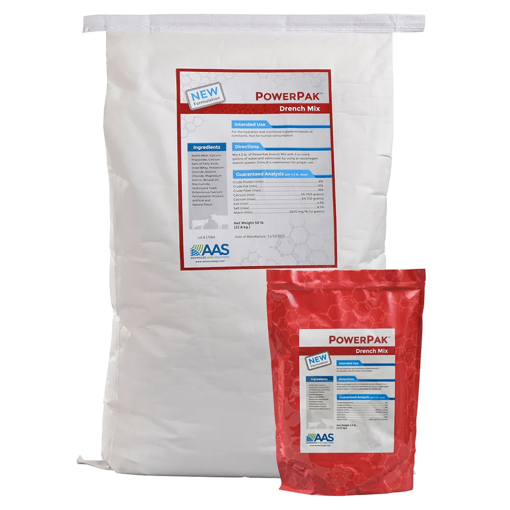 Directions: Mix 4.5 lbs powder with 5 or more gallons water; administer using esophageal drench system.