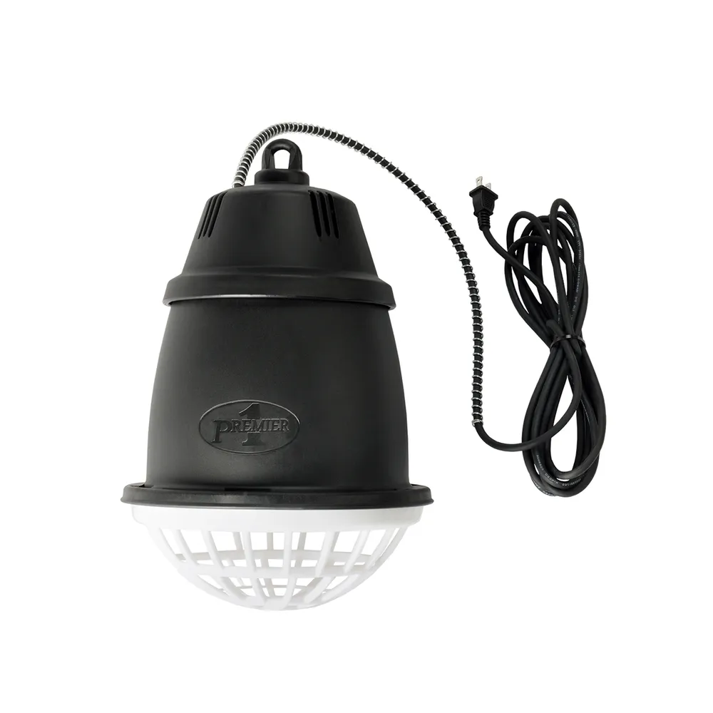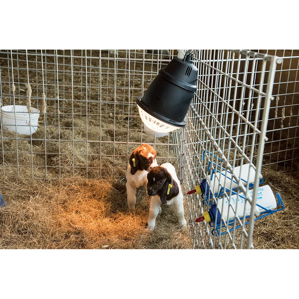Common heat lamps are often blamed for barn fires, scorched wool and overheating. The Prima Heat Lamp is better in every way – strength, safety, protective guard and hanging system. Heavy duty plastic shield keeps animals from damaging bulb.