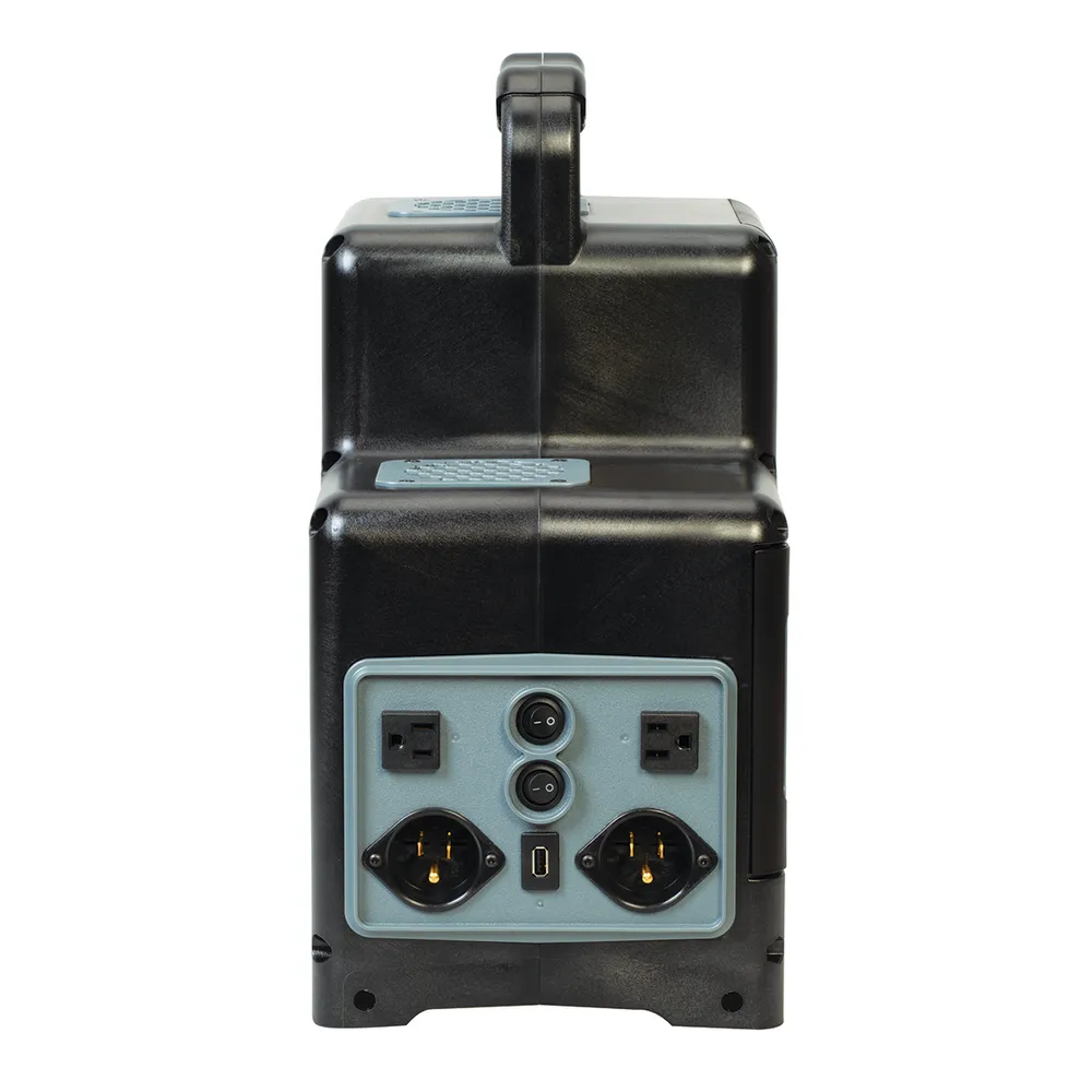 Use one or two motors depending on the power needed for the job. Uses less electricity than a double blower system to prevent electrical circuit overload at shows. Includes one-piece crushproof hose to easily and securely attach to blower using a camlock quick disconnect. Side blower motors feature removable filters for hassle-free cleaning. Features USB port and 2 three-pronged outlets for additional plug-ins.Â
