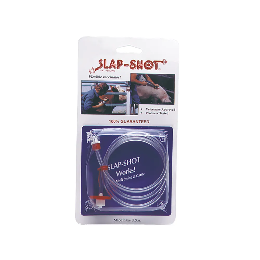 Flexible tubing for use between the needle and syringe to make vaccinating easier on animals that move or flinch upon injection. Reduces injury to handler, needle breakage, animal stress and vaccine waste.Â