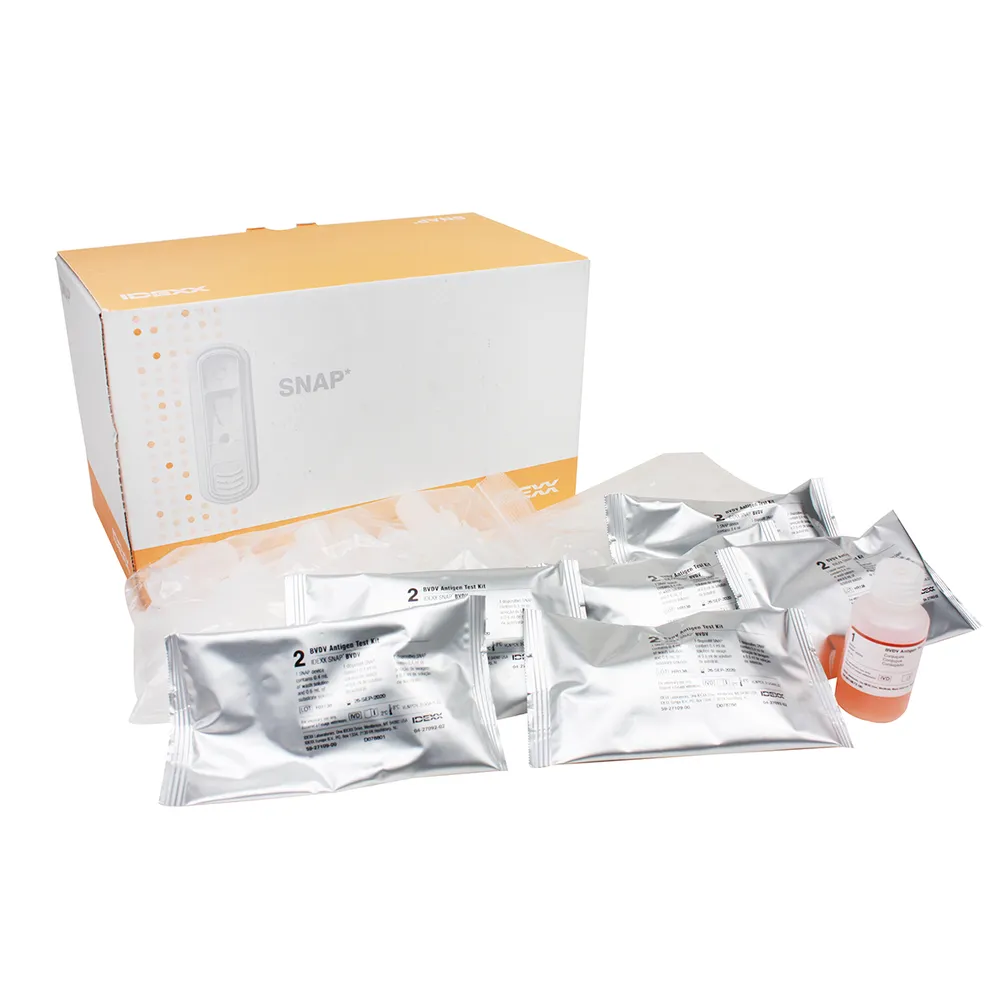 Kit includes 25 SNAP BVDV devices and 42 ml bottle of anti-BVDV: HRPO conjugate; capped ear notch tubes and transfer pipettes.